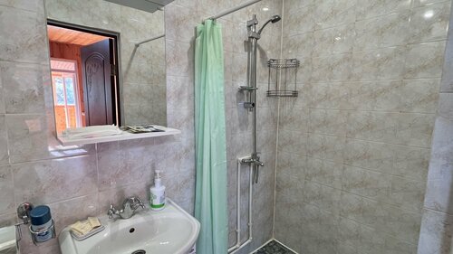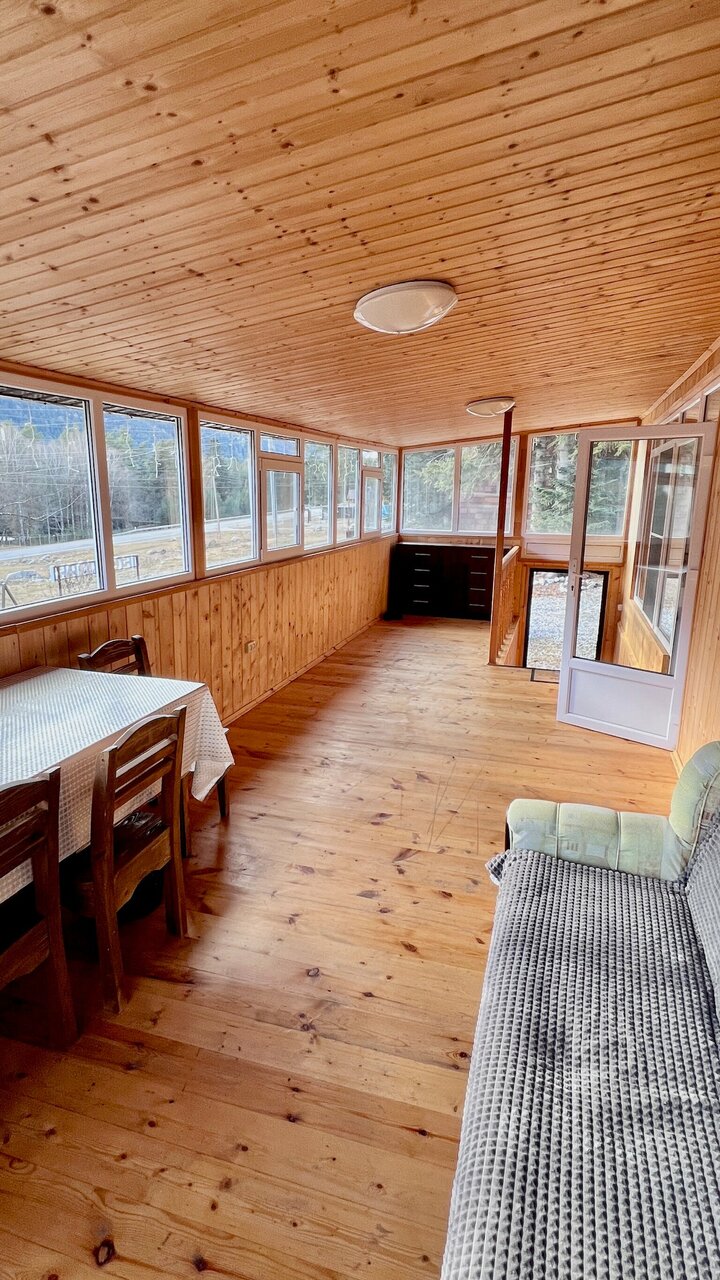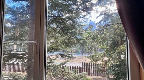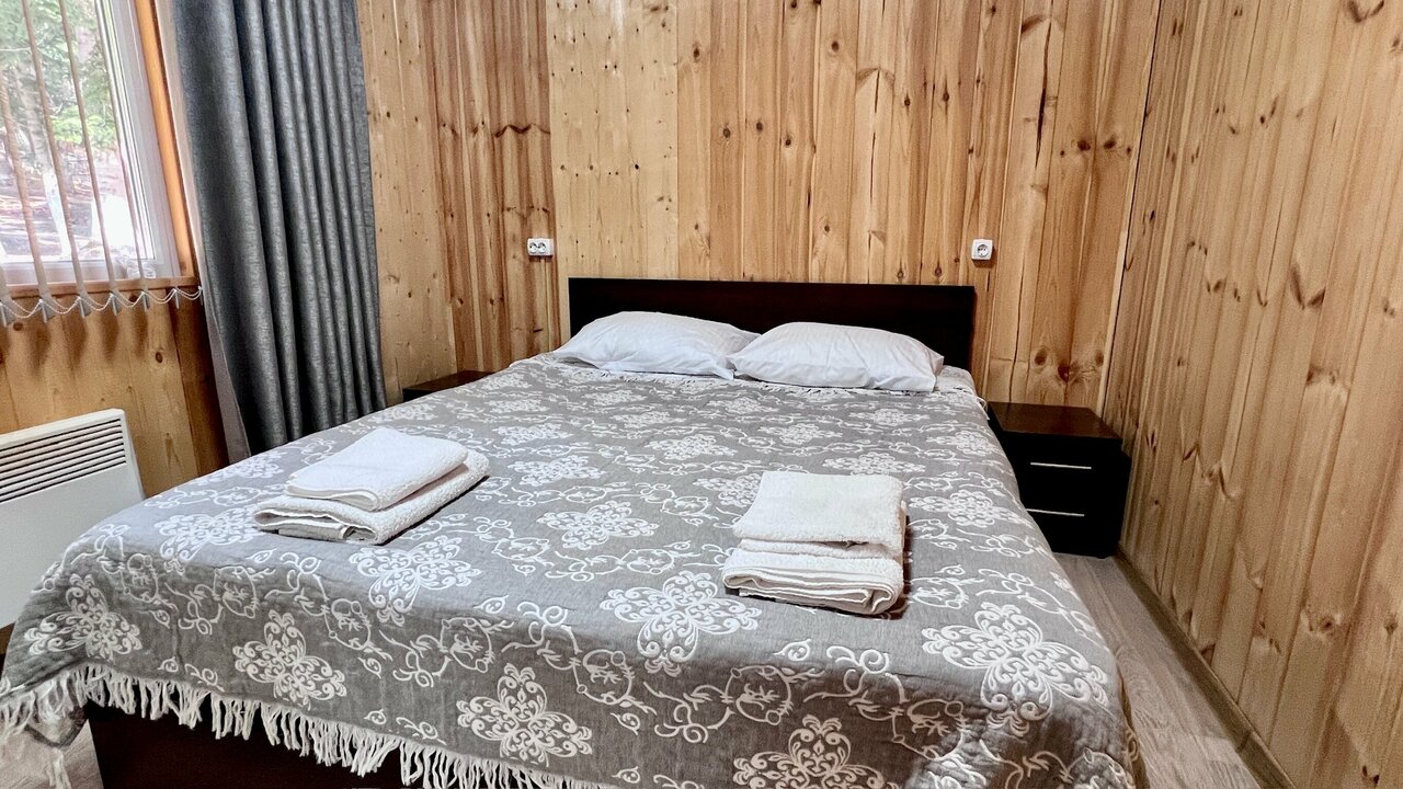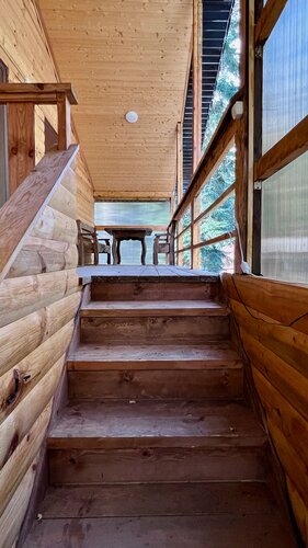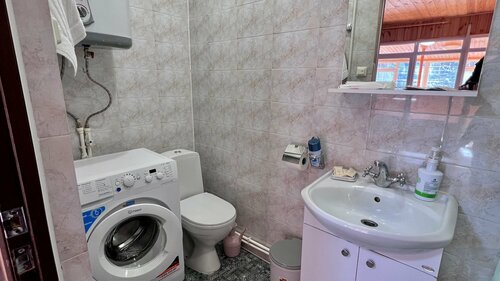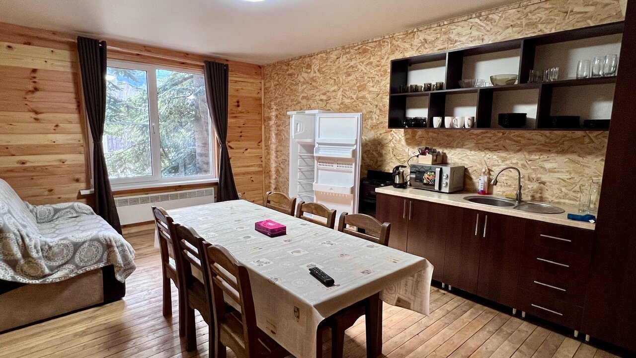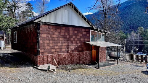 В доме 2 отдельные комнаты с двуспальными кроватями, гостинная с диваном , терасса застекленная с видом на горы, когда светит солнышко- там тепло, месторасположение в лесу у подножия горы, в пешей доступности есть кафе Маринад. Наличие стиральной машины, фена тоже немаловажно. Ремонт в доме подустал конечно , но опять же за свои деньги вариант отличный.