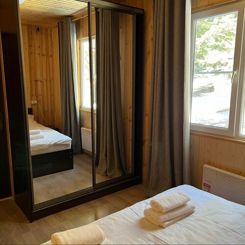 Отличное место для отдыха! Вокруг лес, горнолыжный курорт в 10 минутах езды. В домиках есть все необходимое, было очень тепло даже в -20 ночью, вся мебель новая и чистая. Администраторы помогают решить любой вопрос, однозначно рекомендую!