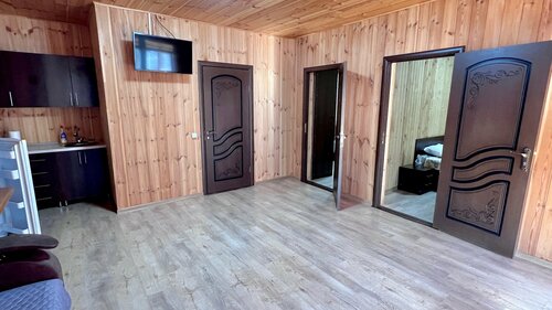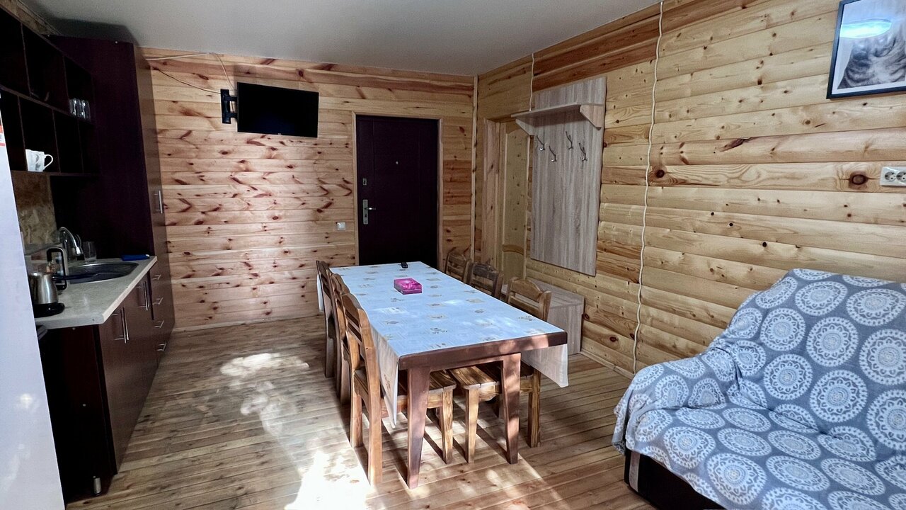 Плюсы: Вид из окна, дом чистый, уютный, теплый. Во дворе беседка , мангал , чан. Особенно нам понравилось очаг во дворе, по вечерам собирались у костра. В общем мы остались очень довольны. Минус , проблемы со связью. Но не критично
